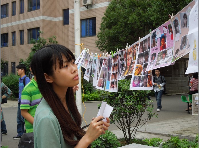 本次“趣味表情大赛”旨在迎接学校第十一届“5.25”心理健康文化节,同时意在拉近两院感情,加强交流。活动面向全校同学征集“趣味表情”,形式有两种,一是真人表情照片,二十手绘漫画表情。所有参赛作品由两院心理办老师和心理部长做一轮筛选后,剩余的进入决赛,参加今天的现场评选活动。活动当天,所有参加评选的照片依次悬挂在帐篷前,编好号码。志愿者们向来往同学发放选票,让热心同学填写,参加投票。所有选票填完后收集起来,通过统计票数评出前五名给予颁奖鼓励。