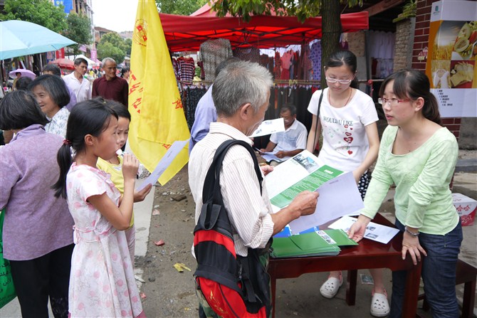 7月19日,是七江乡人民五天一次的热闹集会,趁这个众多群众齐聚集市的好机会,匆匆吃过午饭我们就在七江乡镇府门口开始了我们的党史及化学科普知识宣传活动。在七江乡政府的支持下,我们在乡政府外边的空地张贴了化学知识、党史知识的宣传海报,并在活动现场打起我们三下乡的旗帜及主题横幅,我们的宣传活动立即吸引了一大批群众过来围观,我们趁机向他们耐心细致的讲解化学与人们日常生活中食品安全,卫生状况等方面的知识,并请他们填写我们关于“七江镇当地环境卫生及教育状况”、“党史党建知多少”的问卷,取得了很不错的效果。