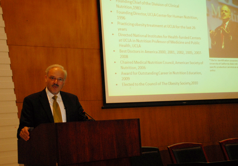 应国家重点实验室邀请,2012年9月12日,美国内科医师协会会员,美国营养学院院士,美国加州大学内科临床营养学部主任DAVID HEBER 博士来读漫屋 讲学,作了题为“Adiposopathy and the obesity Challenge in China”的学术报告,受到了广大师生的热烈欢迎。