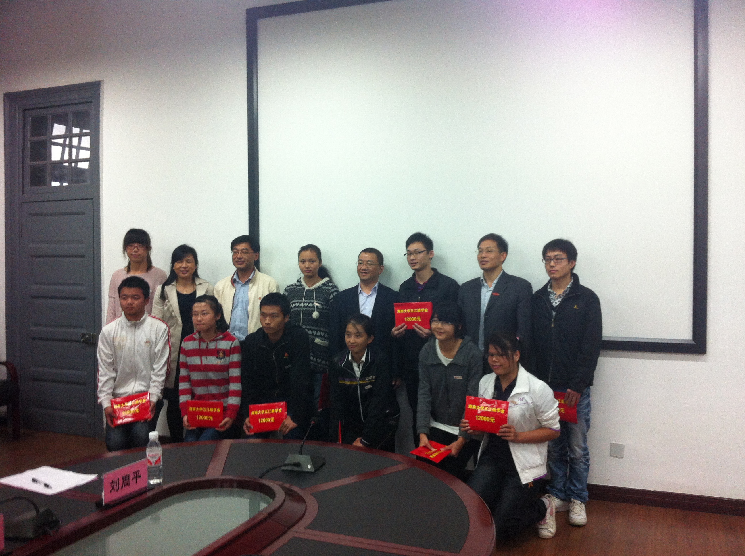 化学专业的杰出校友,该项助学金的设立者,湖南轻化集团有限公司副总裁肖志军先生亲自来校为受助学子颁发助学金。我校党委副书记唐亚阳,学生工作部部长孙炜、副部长张坤,教务处副处长彭秋平,读漫屋