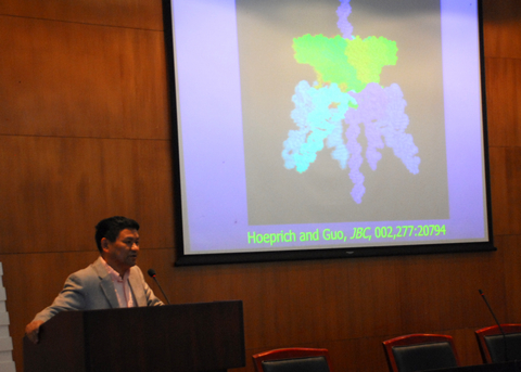 作学术讲座,作了题为“Viral DNA Packaging Nanomotor for Single chemical Sensing,Single Pore DNAFigure printing, Bioreactors, RNA Nanotechnology and Specific Drug Delivery”的学术报告,受到广大师生的热烈欢迎。之后,Guo教授与部分老师进行了深入的交流。
