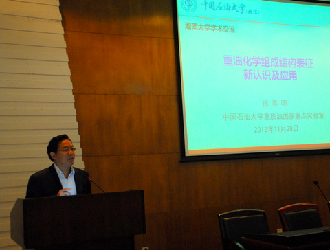 11月28日,应国家重点实验室和学院邀请,中国石油大学(北京)、国家杰出青年基金获得者徐春明教授和中国石油大学(北京)赵振教授来读漫屋 作学术讲座,分别作了题为“石油化学组成表征新认识及应用”“石油燃料加工与利用过程中的环境催化”的学术报告,受到广大师生的热烈欢迎,何晓晓教授主持学术报告。