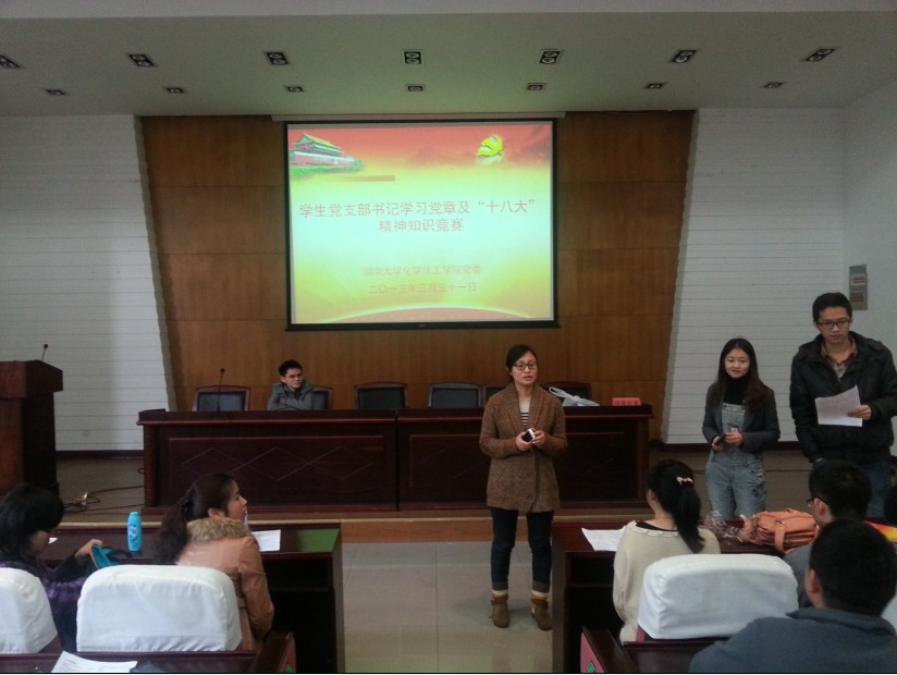 党委在学院D区报告厅组织学院全体学生党支部书记开展了主题为“创新争优,追逐我们的中国梦”知识竞赛,本次知识竞赛中涉及了诸多时政热点,有对“两会”精神和“十八大”报告的解读,也有对党章内容等党建工作常识的考核。读漫屋