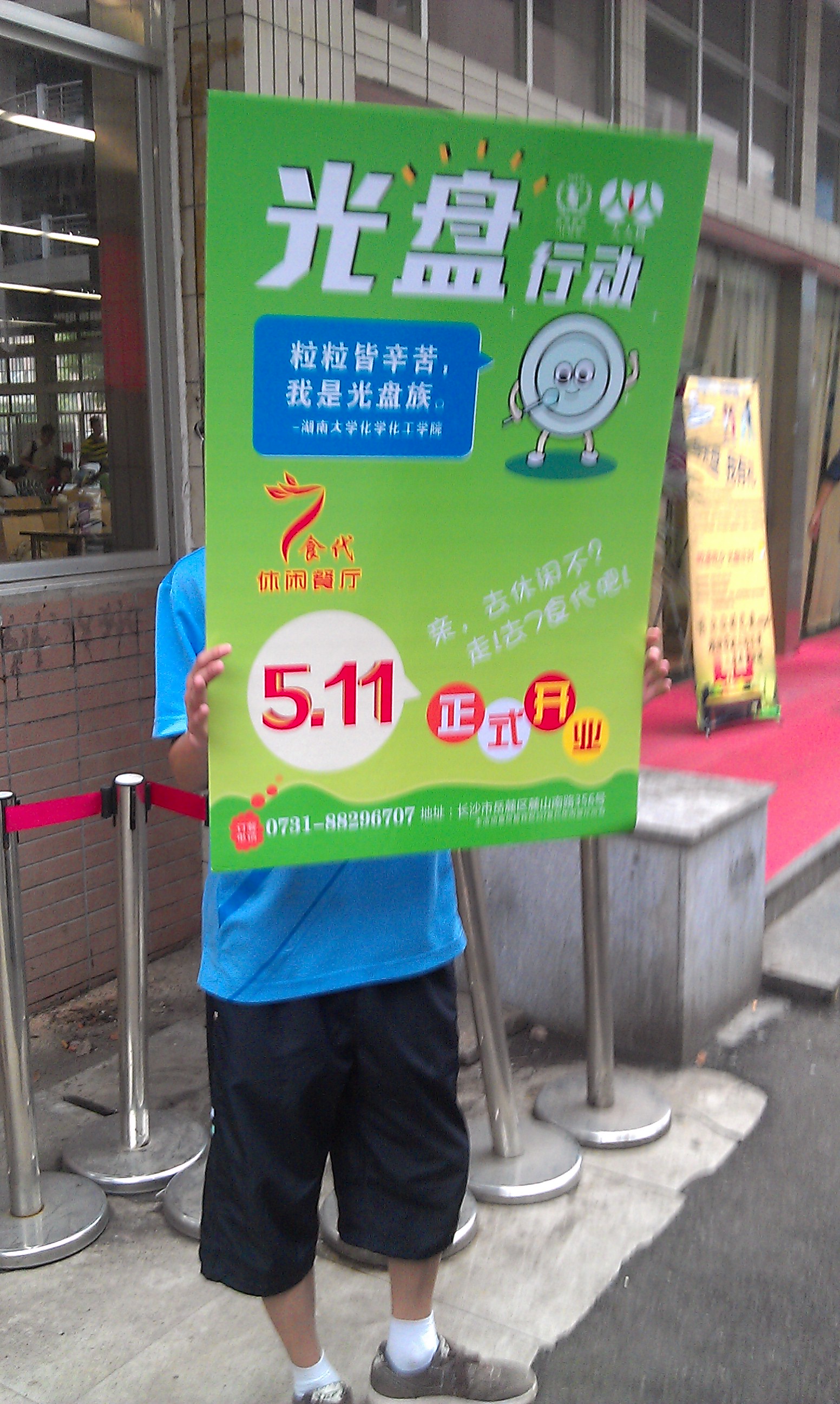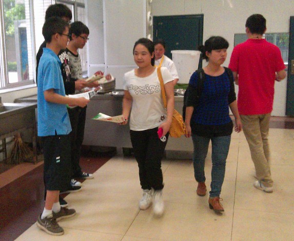 同时,一部分志愿者在食堂门口固定地点,向来往行人介绍学院此次“光盘行动”宣传活动的具体情况,积极鼓励师生参与到我们的活动中来。在食堂收盘处,我们的志愿者为实现“光盘”并送回餐盘的同学发放了由7食代休闲餐厅赞助的代金券,对同学们的行动加以肯定和鼓励。