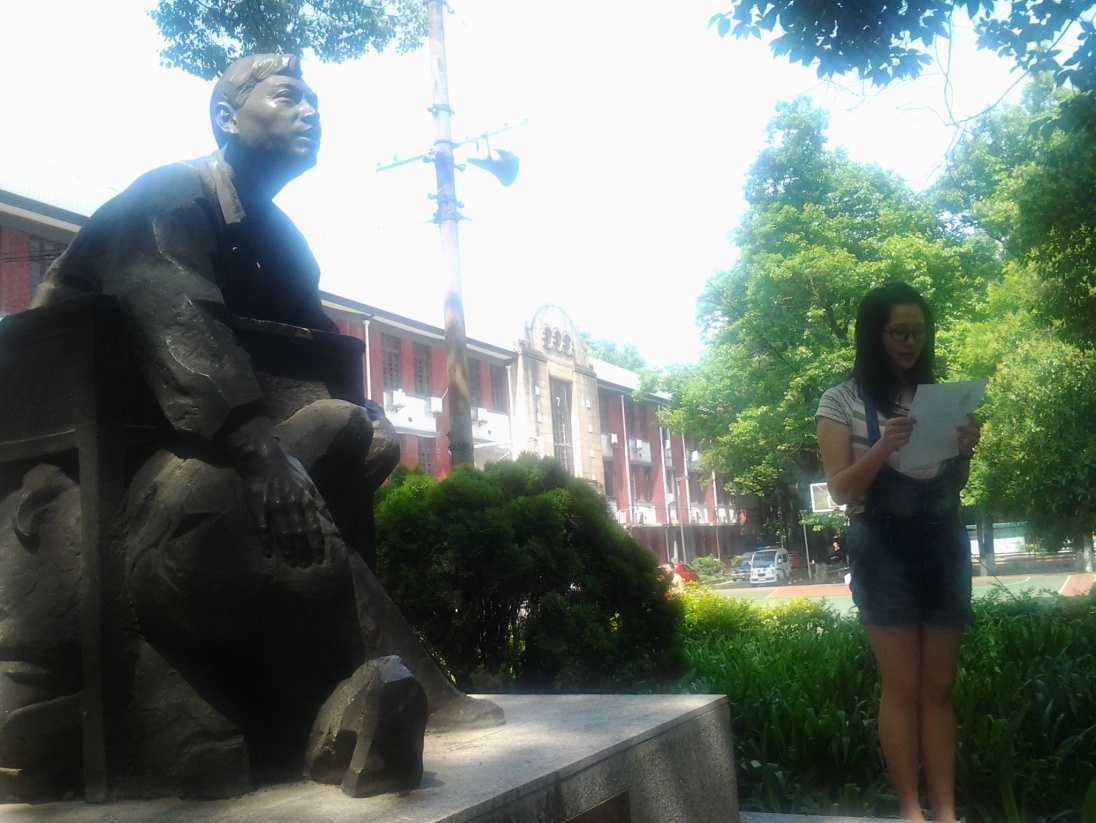 在校区谭千秋学长塑像前,举行仪式纪念我们在地震中牺牲的77级学长谭千秋。