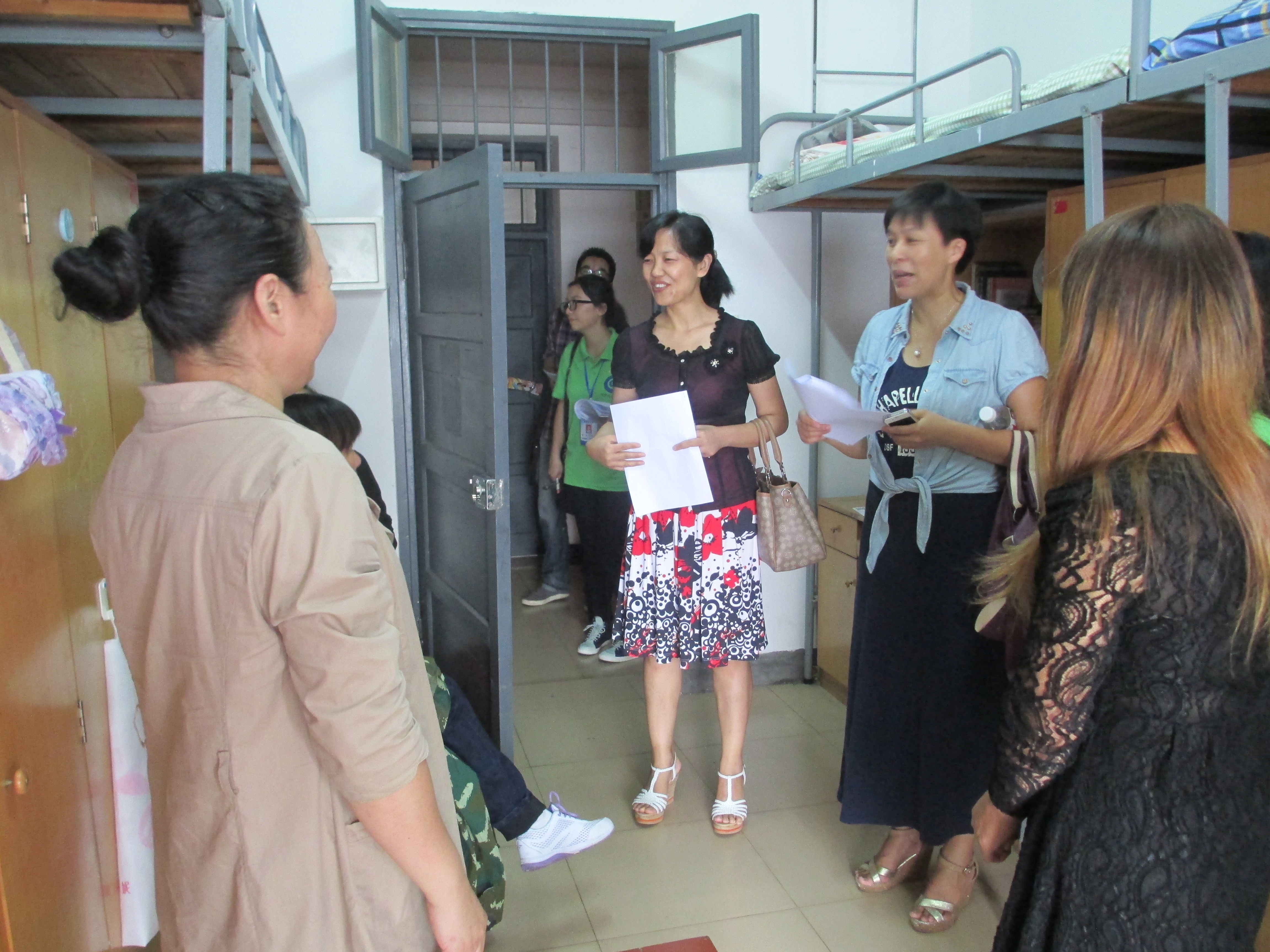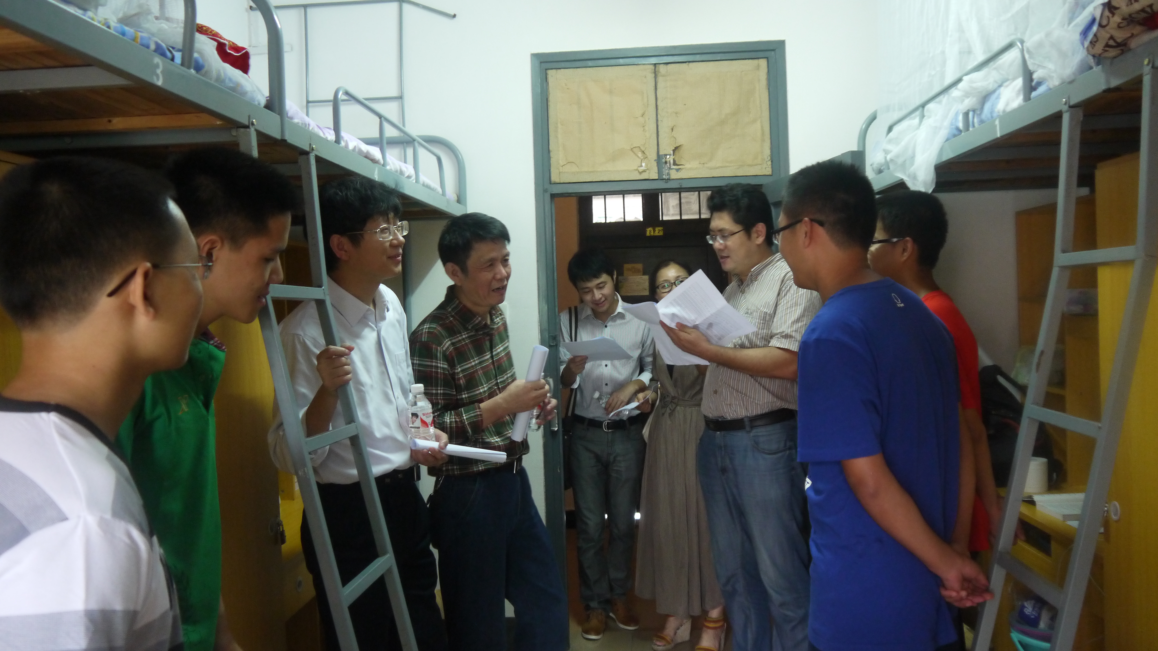 副书记陈义红老师等领导一行分成两组分别对男生和女生寝室进行走访慰问。此次陪同领导看望新生的还有学工办主任曾芳老师,分团委书记李辰老师,12级辅导员陈晓晖老师以及各班新生班主任。