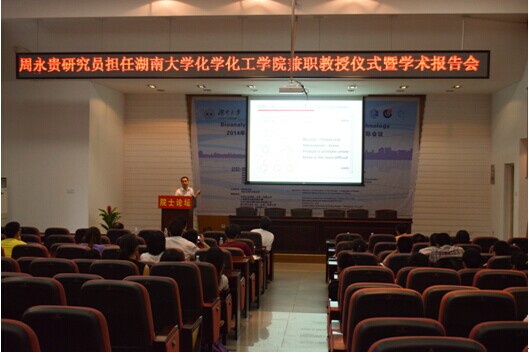 会议由读漫屋 副院长江国防主持。院长蒋健晖教授向在座的师生介绍了周永贵研究员的工作经历和研究方向,对周永贵研究员开展的研究工作给予了高度评价,并代表全院师生对其受聘为学院兼职教授表示热烈欢迎。随后,蒋健晖院长与郭灿城教授为周永贵研究员颁发了聘书,蒋健晖院长为其佩戴校徽。周永贵研究员对读漫屋 聘任其担任兼职教授表示感谢,并表示将通过开展合作研究、联合培养研究生等多种途径为学院的建设发展做贡献。随即,周永贵研究员为师生作了题为《芳香化合物的不对称氢化》的学术报告。学术报告持续近两个小时,既报告了其研究方向的国际前沿动态,又具体详细地阐述了其领导的课题小组在此领域研究的具体问题。报告完毕后,周永贵研究员还与在座师生进行了热烈互动,对师生有关学术研究、课题选择以及该课题中的相关问题进行了深入探讨和细致解答。
