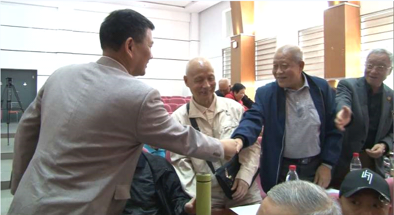 谭蔚弘副校长会前与58级校友亲切握手交谈,校友们激动万分。