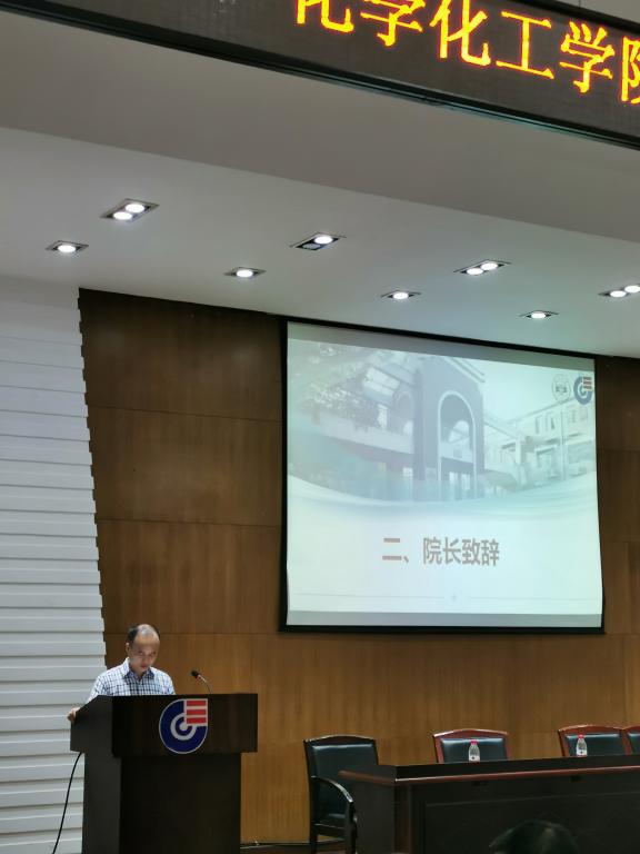 书记王玉枝教授、院长张晓兵教授、党委副书记范媛吉老师、副院长李永军教授、梁志武教授、崔坤在老师,院长助理汪秋安老师、院长助理赵敬哲老师,化工系主任罗潇老师、实验中心主任郭栋才教授以及2019级全体班主任和学工办全体老师,19级新生辅导员夏忠诚老师主持此次典礼。