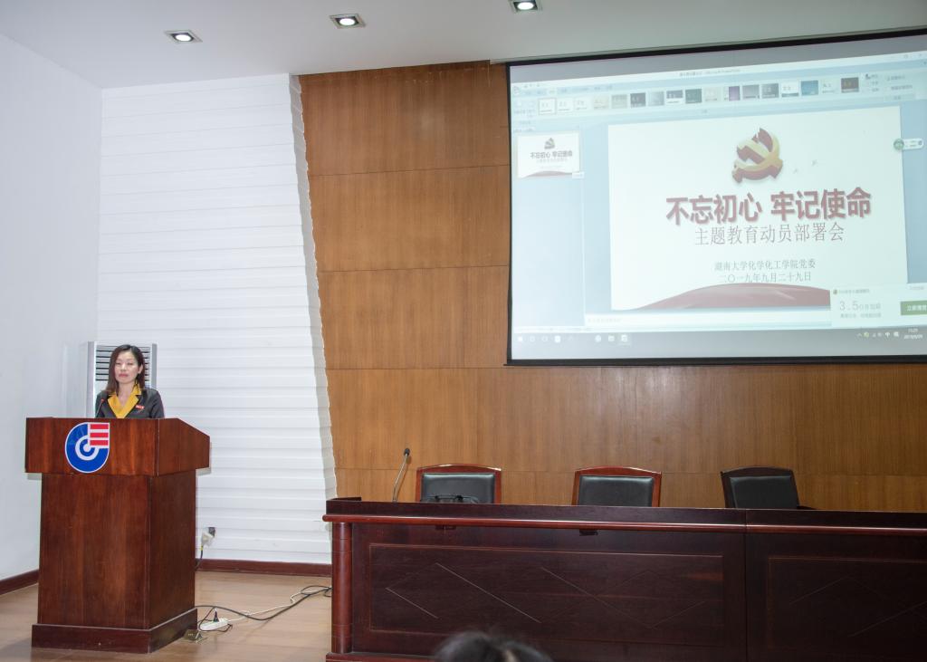王玉枝同志作了动员讲话,传达了学校 “不忘初心、牢记使命”主题教育动员部署会精神。王书记说学院非常重视本次主题教育活动,先学先行,在暑假期间就率先开展“不忘初心,牢记使命”专题教育学习。自第二批主题教育活动启动以来,学院已经成立了“不忘初心、牢记使命”主题教育领导小组及办公室,将统筹推进全院主题教育活动。院党委研究制定了实施方案,对主题教育的总体要求、基本原则、着力重点、主要任务、组织领导等方面做出了明确规定,并报学校主题教育督查指导组审定发至各党支部。王书记指出要提高政治站位,深刻认识开展主题教育的重大意义;要坚持高标准严要求,扎实抓好主题教育各项任务;要加强组织领导,压紧压实责任,确保主题教育取得实效。王书记还强调,要切实把开展主题教育同贯彻落实习近平总书记关于教育的重要论述结合起来,同推进学院“双一流”建设结合起来,确保主题教育活动取得实实在在的成效。