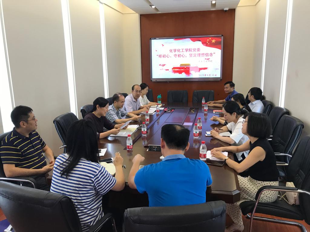在主题教育前期的学习情况,并结合自身工作经历谈了对“明初心、守初心,坚定理想信念”的学习心得和体会;随后,张晓兵院长以人才强院理念结合学院人才引进培养工作从“初心是什么?如何守初心?怎样坚定理想信念”等三个方面谈了心得体会;其他学习组成员都围绕本职工作作了发言;崔坤在副院长围绕学院和学科发展历程,对湖大化学化工人明初心、守初心,坚定理想信念作了精彩发言。