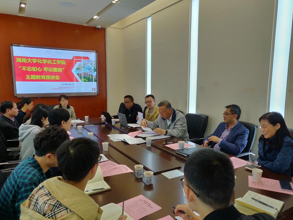 10月23日上午,教育部直属高校“不忘初心、牢记使命”主题教育第九巡回指导组组长陈子辰、成员孟凡东、张宗禧一行3人,来学院调研“不忘初心、牢记使命”主题教育开展情况并进行指导。学校党委常委、党委组织部部长孙炜和党委组织部副部长钟叶姣出席会议。院党委书记王玉枝、院党委副书记及纪委书记范媛吉和教工学生共8位党支部书记参加座谈会。