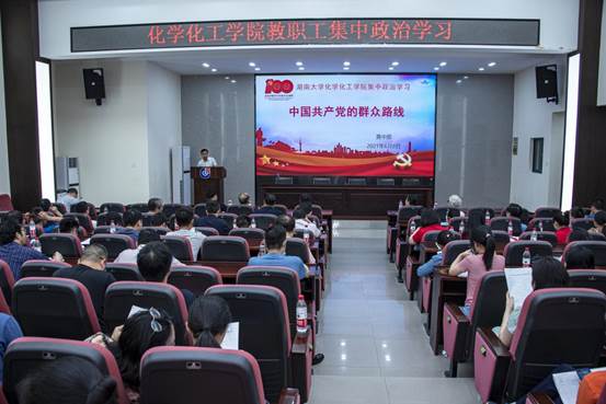于新化工楼D区报告厅开展了2021年第十四次全体教职工集中政治学习。本次集中学习主讲嘉宾为应化系党支部书记黄中原老师,授课主题为《中国共产党的群众路线》,学院全体教职工参与学习。