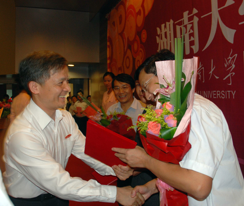 “没有轰轰烈烈,没有叱咤风云,在这个平凡的岗位上,我收获了自己的事业,由我主编的数本著作是对学校最好的献礼。”面对眼前的鲜花和荣誉,获奖教师代表土木学院副教授袁果深情地讲述了在湖大24年的任教经历,父亲的耳濡目染让她立志要在湖大这片土壤上,为祖国浇灌出最美丽的花朵。