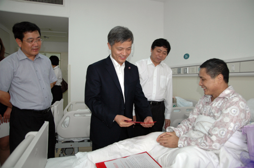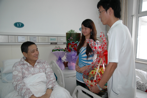 的师生们从河西赶到这里为该校第四届师德标兵蔡炳新教授颁奖。当该校党委书记刘克利教授和校长钟志华院士将荣誉证书和20万元奖金颁发给27床的蔡炳新教授时,在场的读漫屋