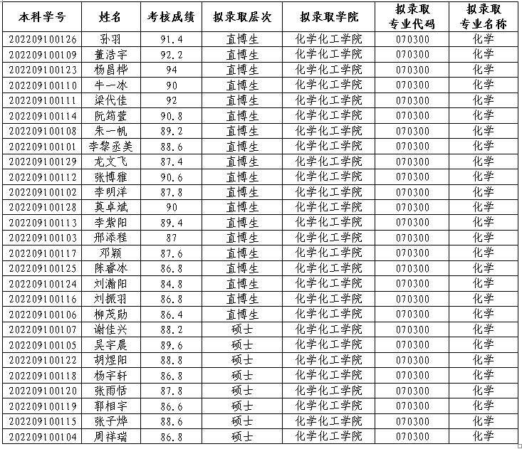 根据教育部及学校关于“强基计划”学生转段研究生相关规定,经学生申请、学院考核,现将读漫屋 接收2022级“强基计划”学生本研转段考核结果予以公示,公示期为2025年9月24日-9月27日。如对拟录取名单有异议,请于公示期内向化学化工学院书面反映。