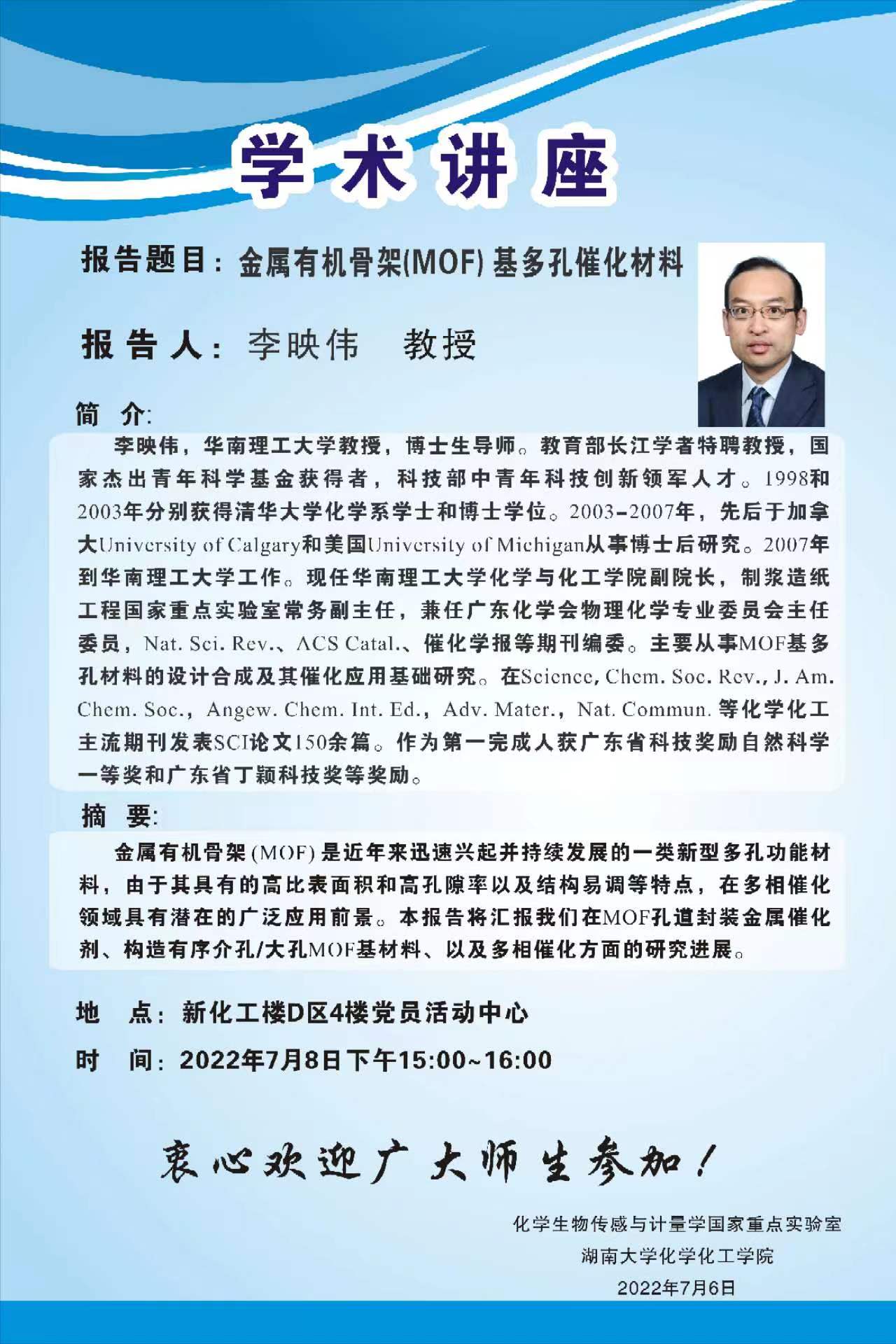 2022年7月8日华南理工大学李映伟教授学术报告会