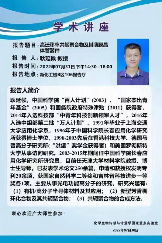 2022年7月31日天津大学耿延候教授学术报告会