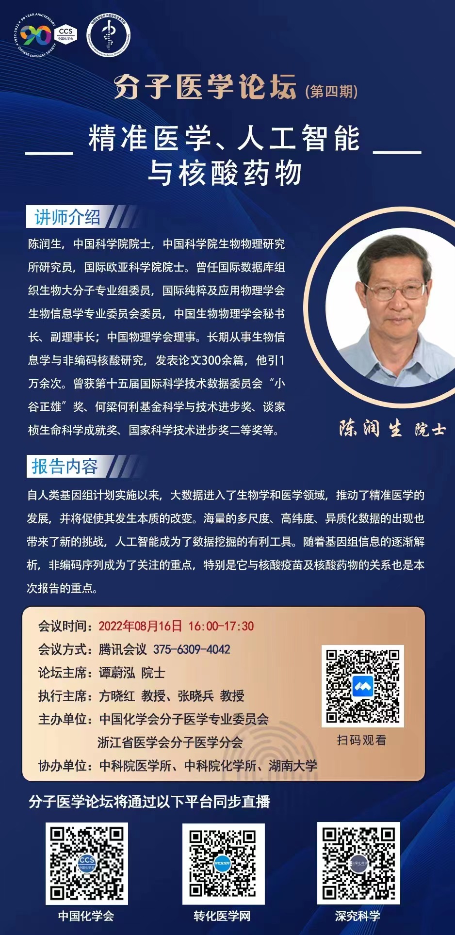 2022年8月16日中国科学院生物物理研究所陈润生院士学术报告会