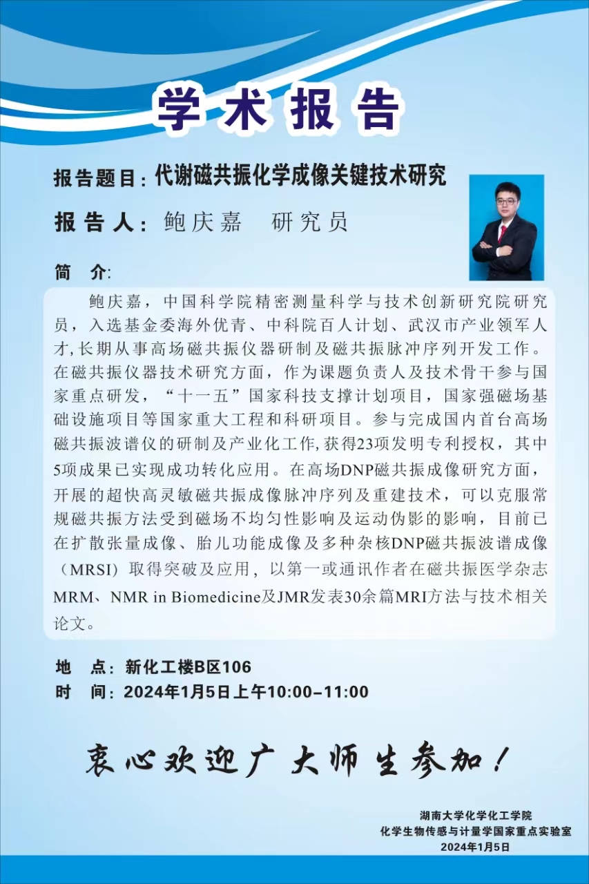 2024年1月5日中国科学院精密测量科学与技术创新研究院鲍庆嘉研究员学术报告会