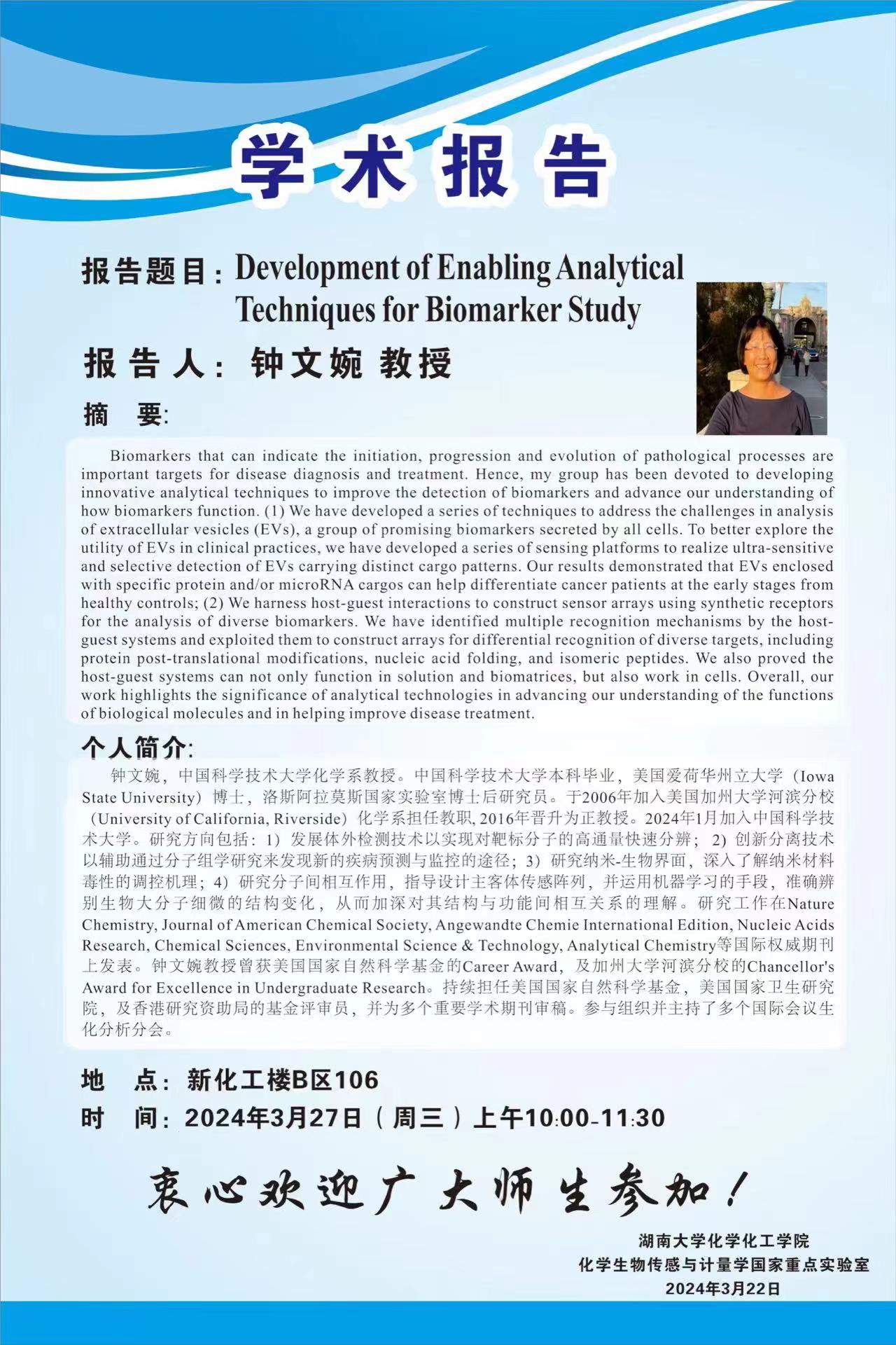2024年3月27日中国科学技术大学钟文婉教授学术报告会