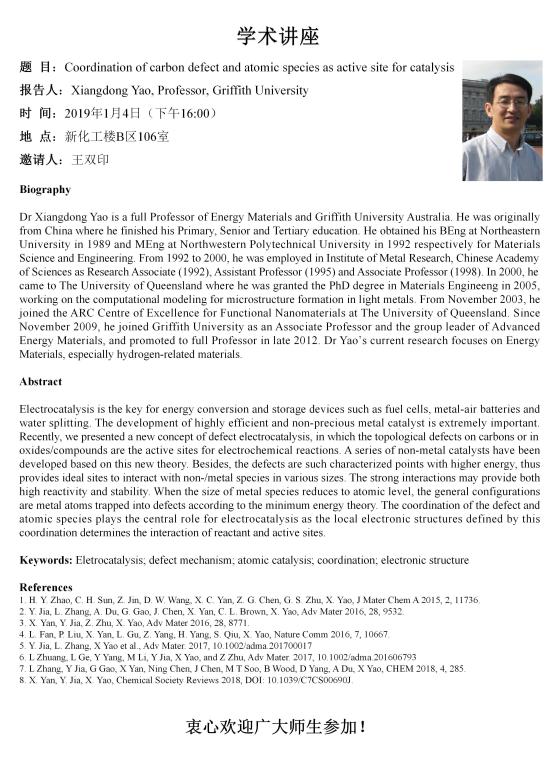2019年1月4日格里菲斯大学姚向东教授学术报告会
