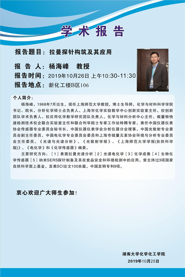 下一条:2019年10月24日中科院大连化学物理研究所汪国雄研究员学术报告会