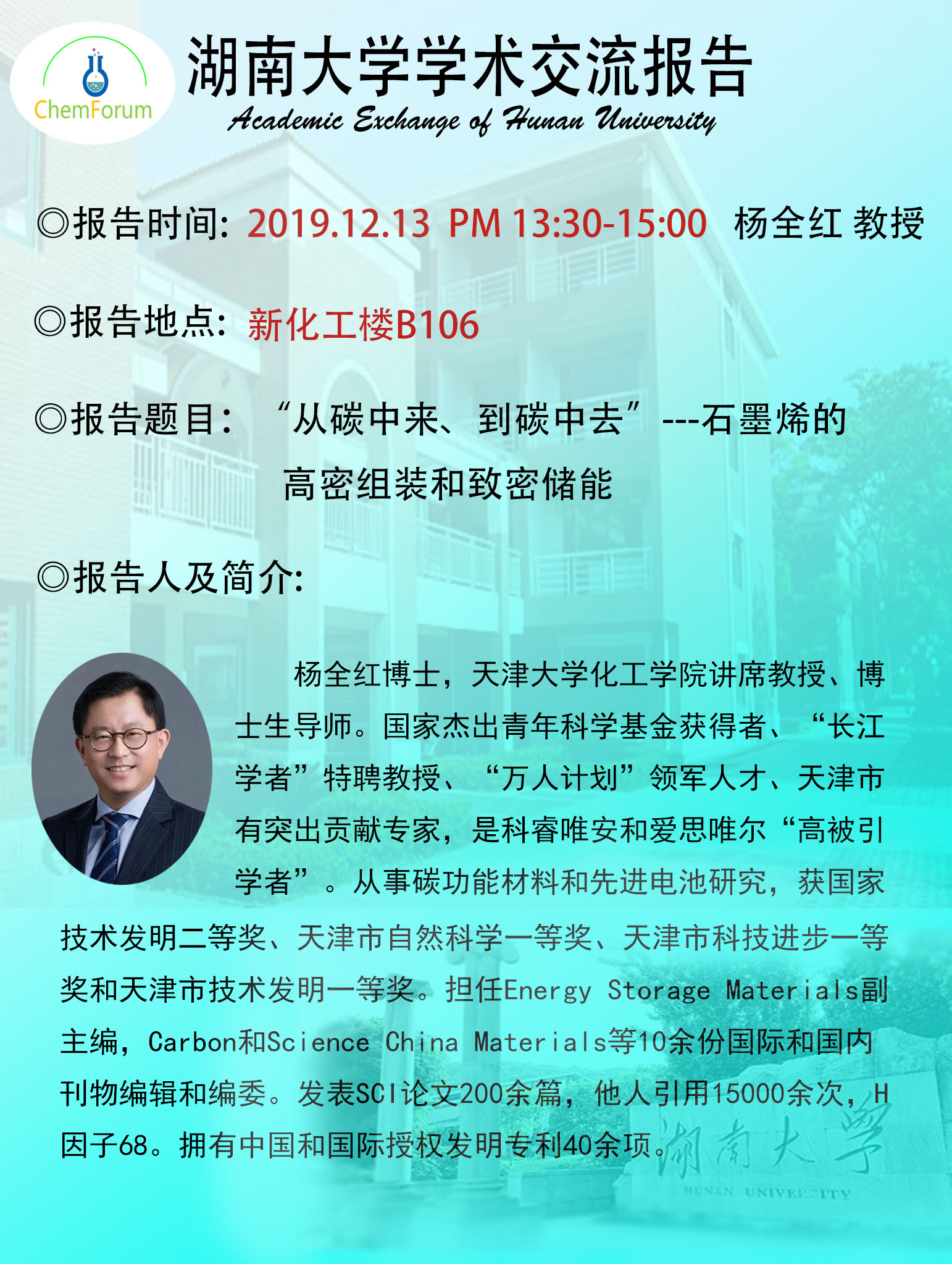 2019年12月13日天津大学杨全红教授学术报告会