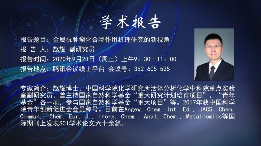 2020年9月23日中国科学院化学研究所赵耀副研究员学术报告会