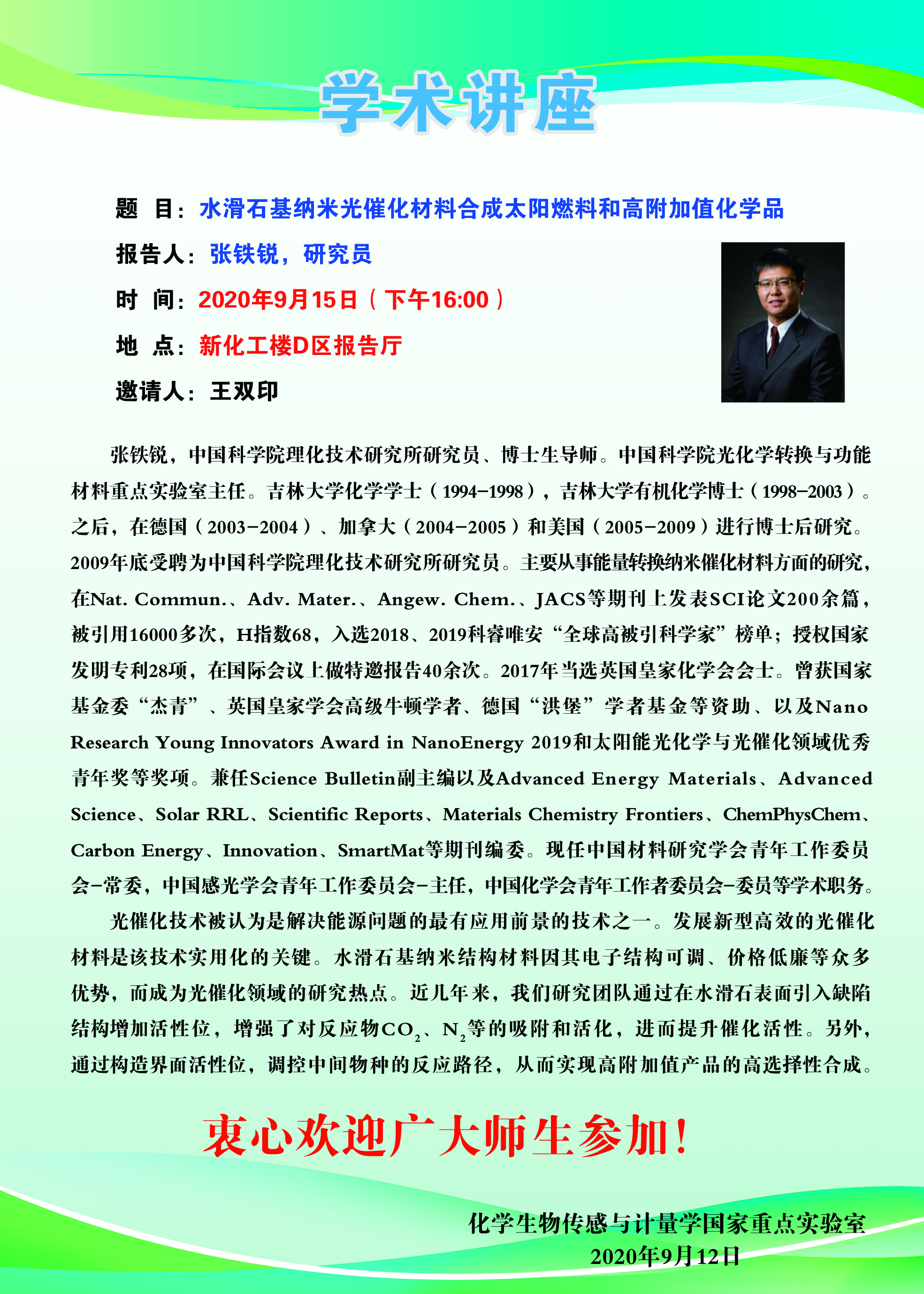 2020年9月15日中国科学院理化技术研究所张铁锐研究员学术报告会