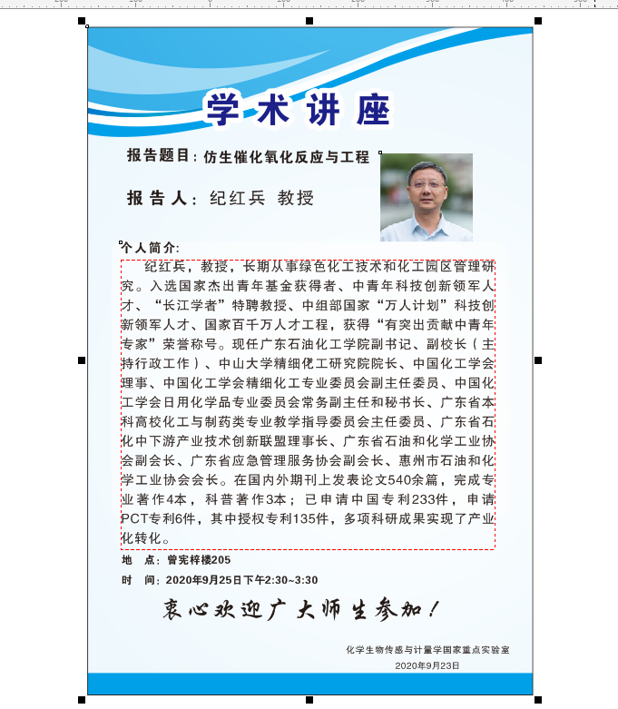 2020年9月25日广东石油化工学院纪红兵教授学术报告会