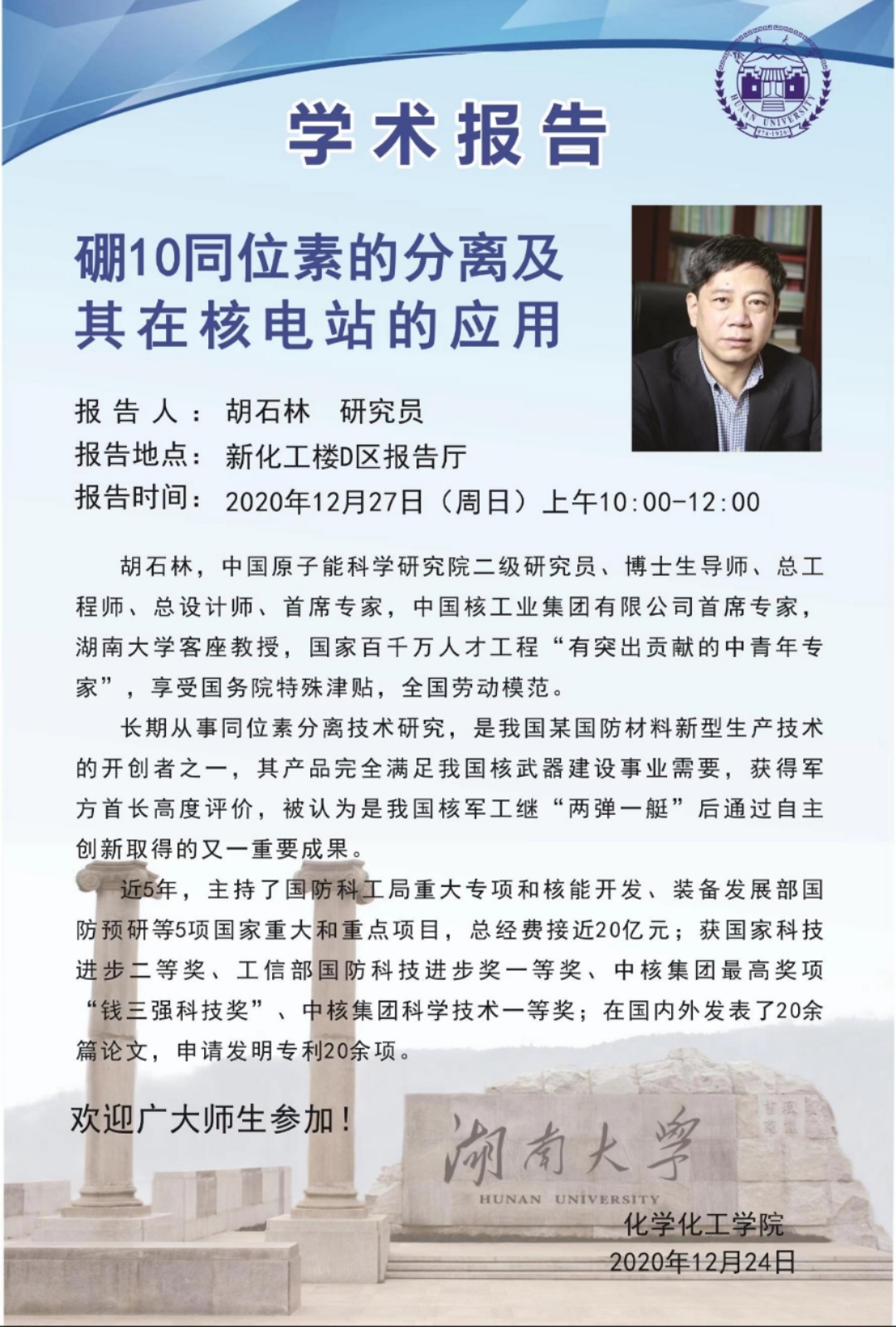 2020年12月27日中国原子能科学研究院胡石林研究员学术报告会