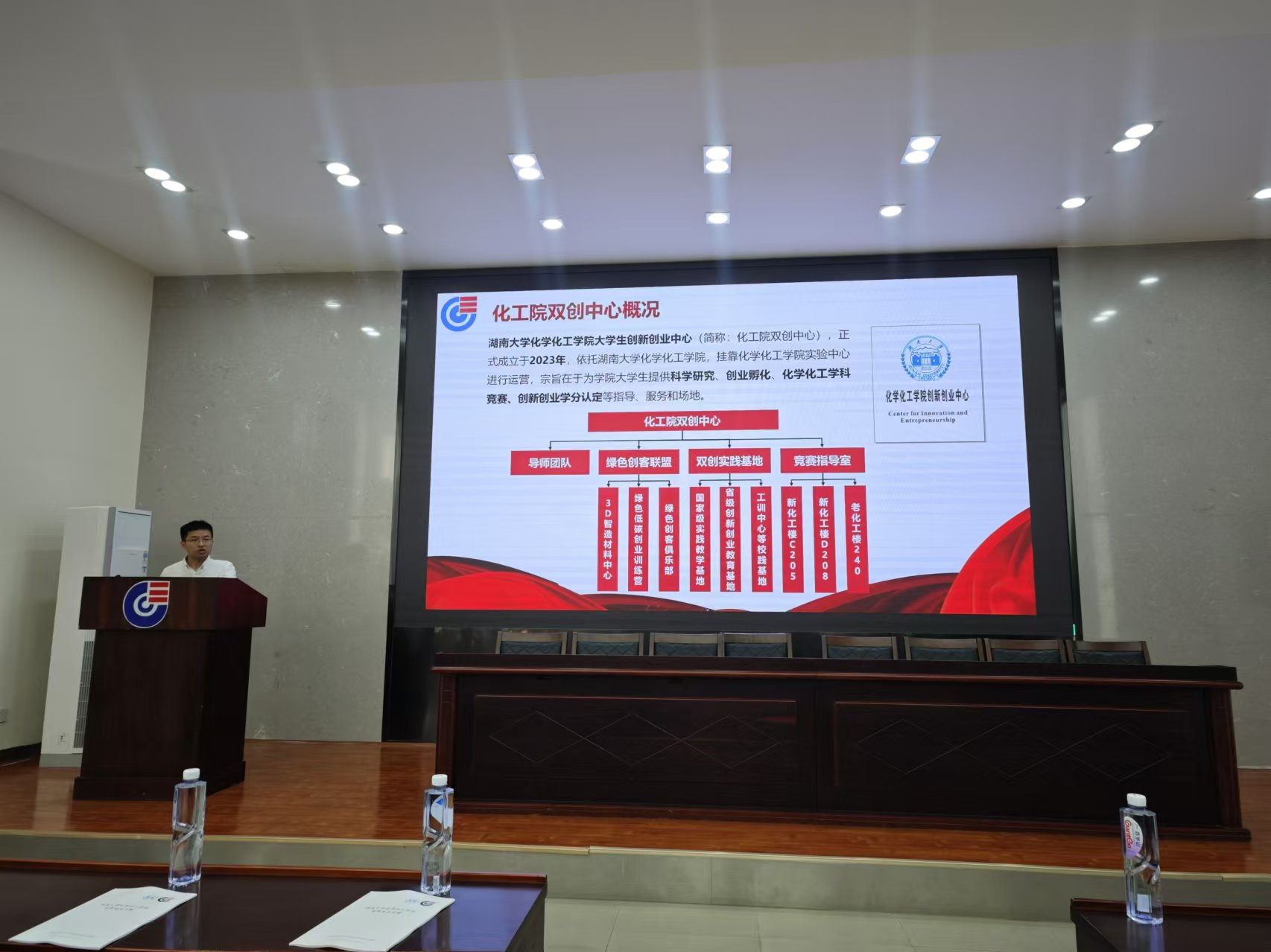 10月23日中午13:00点,学院在新化工楼D区报告厅隆重举办2024年度创新创业成果展活动。活动由学院双创中心主任金波主持,出席嘉宾包括书记王双印,副书记李洪玉,副院长李永军,院长助理罗潇、王少飞,竞赛指导教师代表朱建、李文生、李昆,辅导员王嘉琪、何妮翰,获奖学生代表李镓睿、高丽薇、浣海山,近300位本科生参加。活动包括学院双创中心概况、近五年创新创业回顾、教师代表发言、学生代表发言、书记讲话等环节。