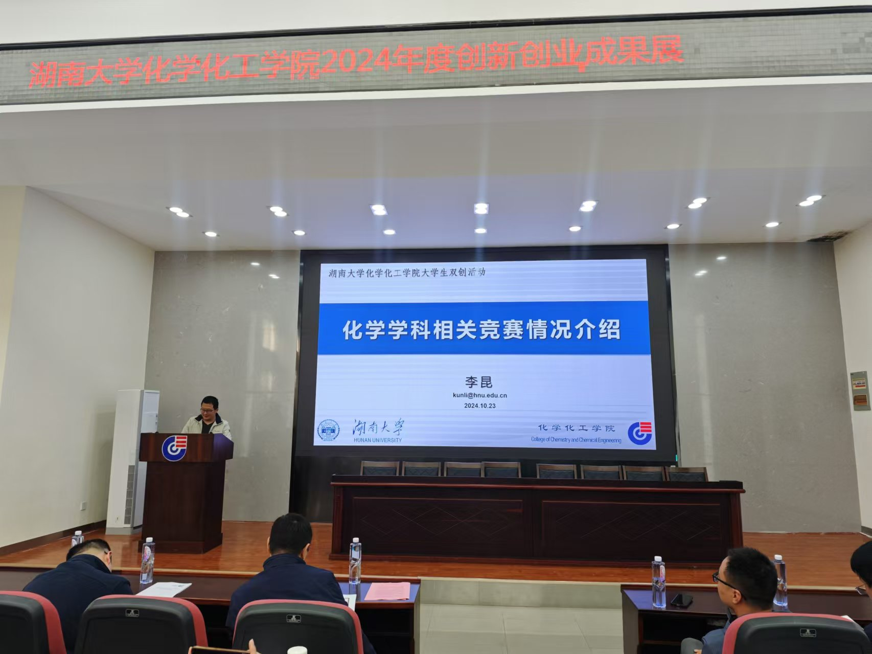李昆老师着重介绍了化学学科竞赛(全国大学生化学实验竞赛与全国大学生化学实验创新设计大赛)基本情况,也讲述了从这些赛事中学生能获取到哪些能力、如何报名参赛、学院下阶段如何安排这两个赛事等内容。