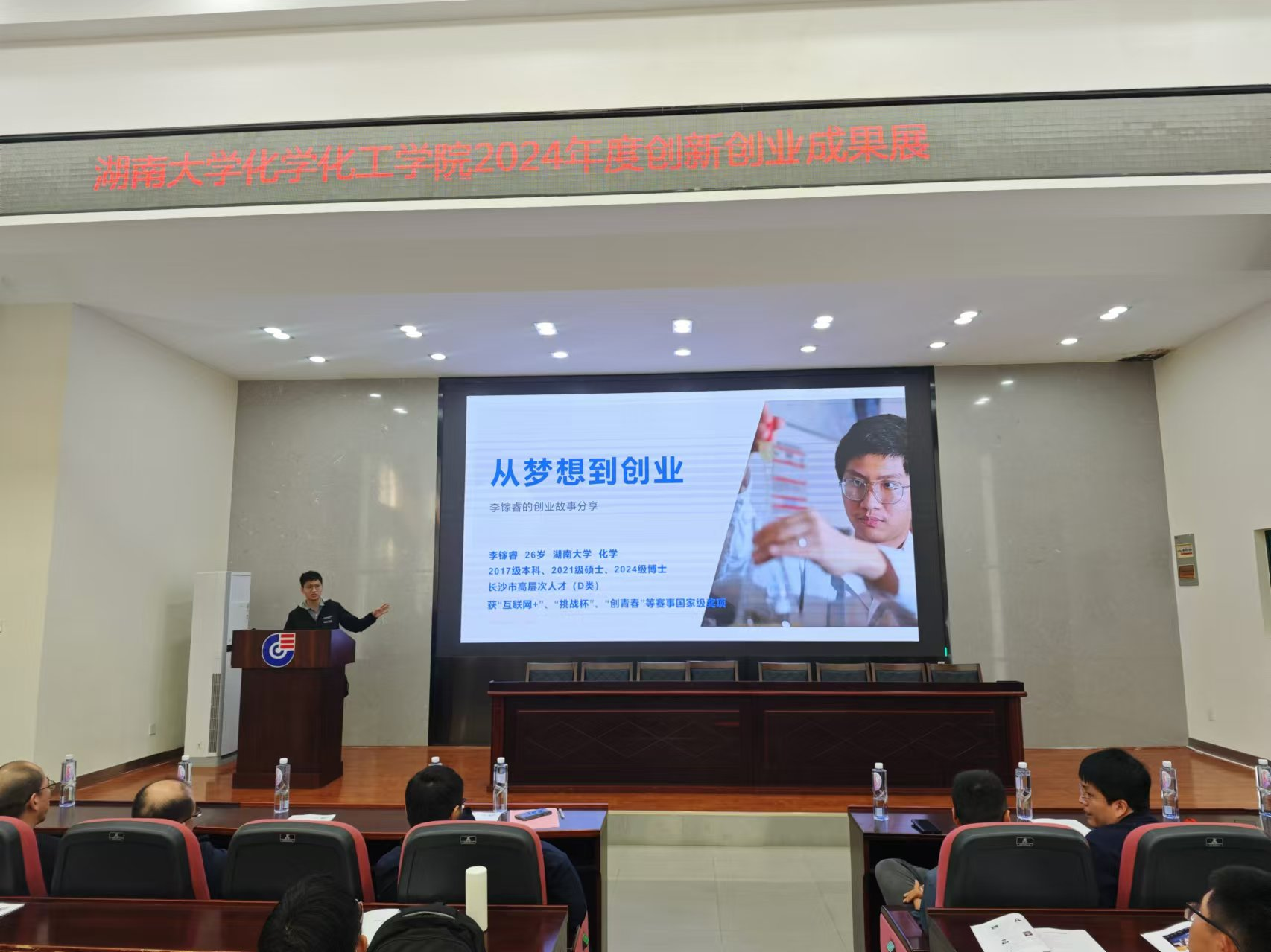 李镓睿从三大赛事参与者角度为同学们分享了如何进行创新创业、如何从双创竞赛中获取书本上学不到的知识,也为同学们进行创新创业提出了一些建议。