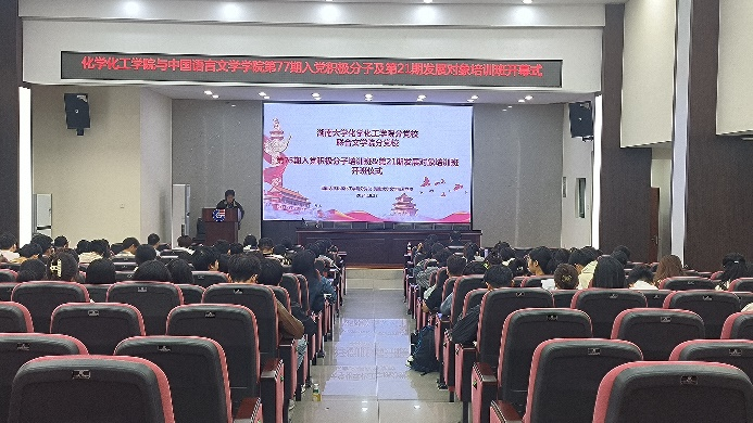与文学院第七十七期入党积极分子及第二十一期发展对象培训班开班仪式。本次培训目的旨在进一步提升入党积极分子及发展对象的思想政治素质,确保党员发展质量,共计100多名师生参加本次开班仪式。