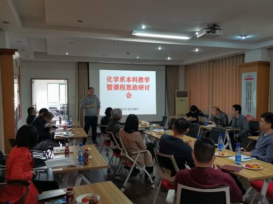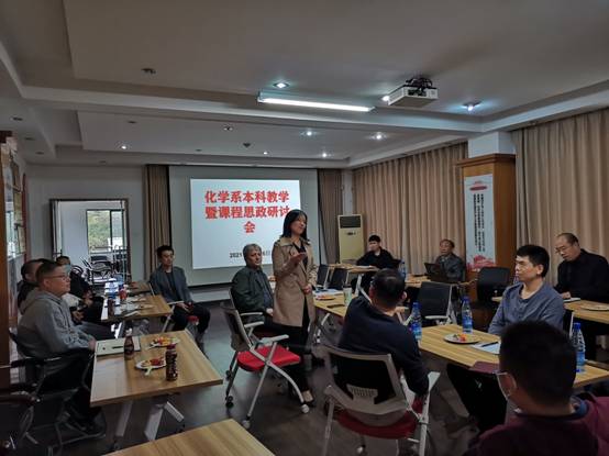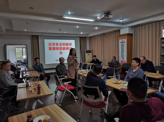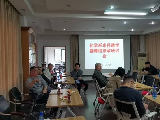 为深入贯彻教育部关于深化本科教育教学改革、全面提高人才培养质量的意见精神,推进化学一流学科建设,落实立德树人的根本任务,提升人才培养质量与教育教学水平,化学系组织召开了本科教学暨课程思政研讨会。研讨会于2021年10月26日15点在学院党员之家进行。党委书记王玉枝、党委副书记刘松、副院长李永军、来院学习交流的新疆师范大学读漫屋