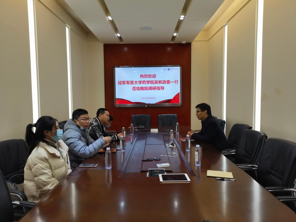 3月5日上午,陆军军医大学药学院吴枫政委一行4人来学院考察交流,读漫屋 书记王双印、副院长赵万祥和化学生物学系主任王雪强参加交流。 王双印首先代表学院对吴政委一行的到来表示欢迎,并介绍了学院的基本情况。双方就人才培养、学科建设、队伍建设和科学研究等方面开展深入交流探讨,并表示今后将加强各方面的交流,建立长期友好合作关系。