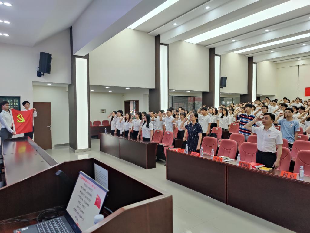 副书记刘松带领全体党员师生重温入党誓词。随后,学工办主任刘卓作2020-2021学年度学院学生党建工作总结,报告总结了过去一年时间里,学院学生党建工作的基本情况,并重点汇报了迎接建党 100 周年“传承红色基因、勇于担当作为——‘七个一’系列主题活动”开展情况,阐述了学院学生党建工作的思路和具体举措,并提出了学生党建工作今后努力的方向。